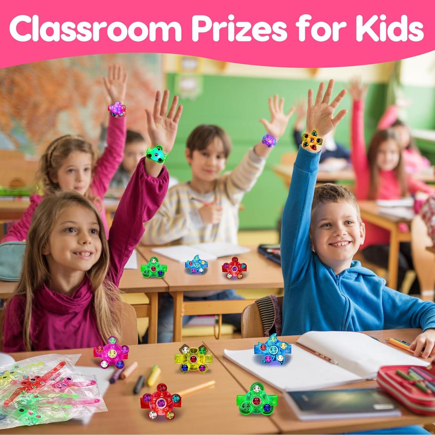 【Multipurpose Bulk Toys】LED light up fidget spinner bracelets can be a hit on your lighting party favors for both boys and girls. Perfect for birthday party favors for kids 4-8 6-8, kids goodie bag stuffers, return gifts for birthday party, treasure chest toys, carnival prizes, student gifts from teacher bulk, prize bin toys for classroom, bulk toys for kids prizes, Valentine goody bag stuffers for kids classroom, Easter egg fillers, Easter basket stuffer.