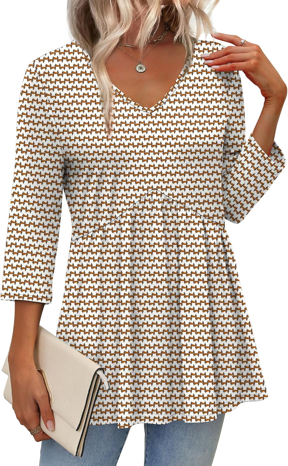 OFEEFAN Peplum Tops V Neck T Shirts Womens 3/4 Sleeve Tops Plus Sized 3/4 Sleeve Babydoll Shirts Available in sizes S to 3XL