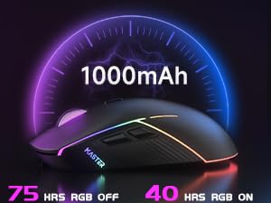 ใ๐๐ฑ๐ญ๐ซ๐๐ฆ๐๐ฅ๐ฒ ๐๐จ๐ง๐ ๐๐๐ญ๐ญ๐๐ซ๐ฒ ๐๐ข๐๐ใThis rechargeable mouse has a built-in 1000mAh battery, which can provide an ultra-long battery life of 40 hours (RGB on) to 75 hours (RGB off) on a single charge. Two-level automatic sleep mode (automatically enters light sleep after 1 minute of inactivity, and automatically enters deep sleep after 5 minutes of inactivity). It only takes 1.5 hours to fully charge the mouse, and it can also be used wired while charging.