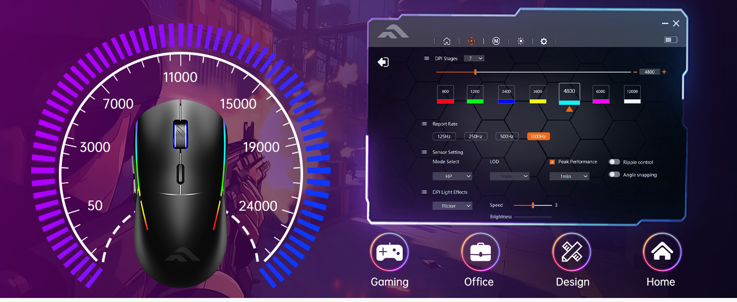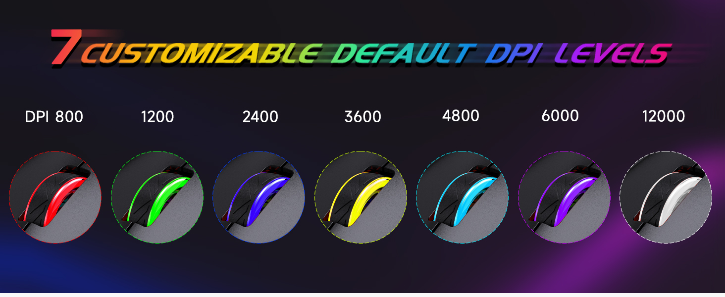 ใ๐๐๐ฃ๐ฎ๐ฌ๐ญ๐๐๐ฅ๐ ๐๐๐ & ๐๐ข๐ ๐ก-๐ฉ๐ซ๐๐๐ข๐ฌ๐ข๐จ๐ง ๐๐๐ง๐ฌ๐จ๐ซใThis wireless gaming mouse has 7 default DPI levels. Through the driver, the DPI of each level can be adjusted at will (50-24000). 4 levels of adjustable polling rate (125Hz/250Hz/500Hz/1000Hz), built-in high-speed sensor (maximum speed: 400 IPS, maximum acceleration: 35G) and 0.1ms low-latency connection, you can easily adjust the movement speed to experience a smoother, more stable and more accurate gaming experience.