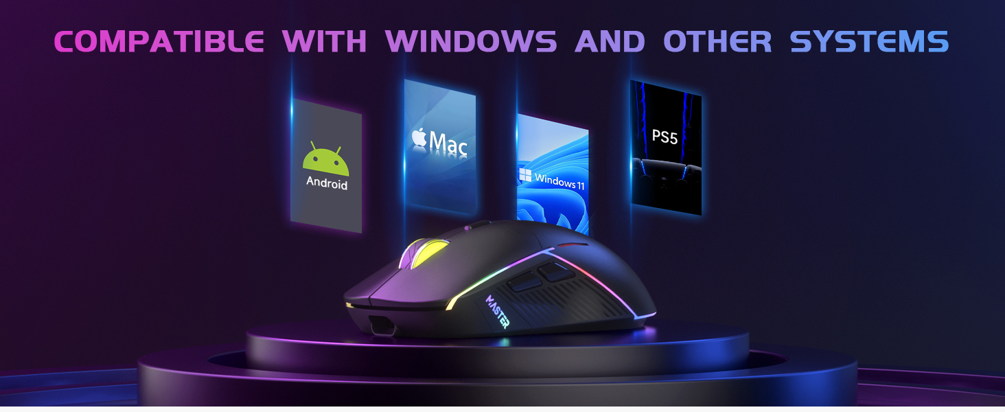 ใ๐ ๐๐จ๐ง๐ง๐๐๐ญ๐ข๐จ๐ง ๐๐๐ญ๐ก๐จ๐๐ฌ & ๐๐ข๐๐ ๐๐จ๐ฆ๐ฉ๐๐ญ๐ข๐๐ข๐ฅ๐ข๐ญ๐ฒใThis wireless mouse game not only supports 2.4Ghz wireless connection and Type-c wired connection, but also supports Bluetooth 5.3 connection, which can be easily switched between different devices or systems to achieve one-to-many use. The Bluetooth gaming mouse is compatible with Windows, Mac OS, iPadOS, Android and other operating systems, and is suitable for PC, Mac, laptops, desktops, tablets and other devices.