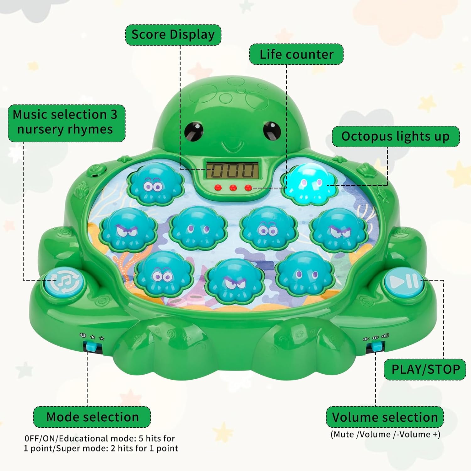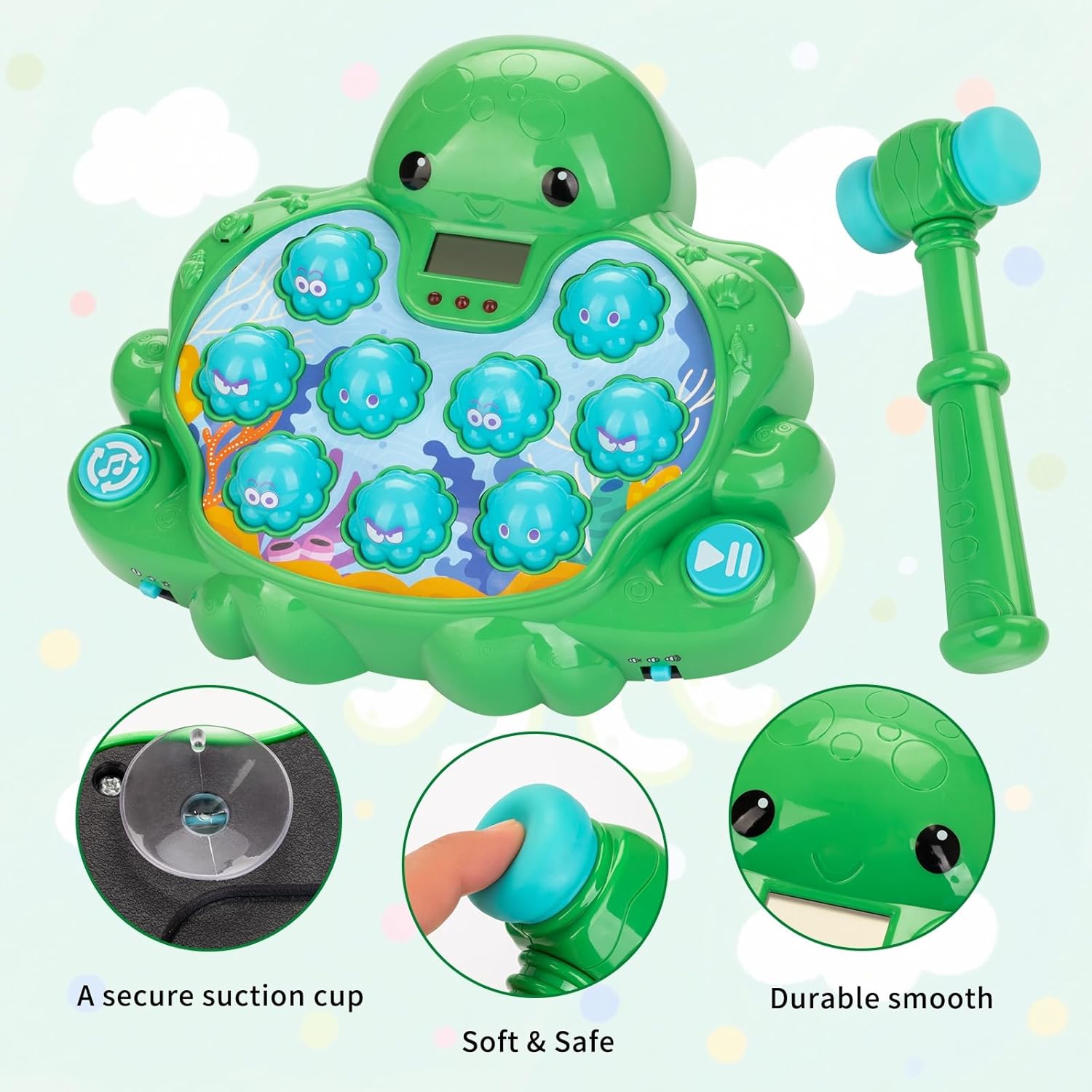 【Ready-to-Play Value Set】Everything arrives gift-ready: octopus game unit, two soft mallets. The perfect toy for the holiday season! An ideal gift for kids aged 2 3 4 5 6 and up.