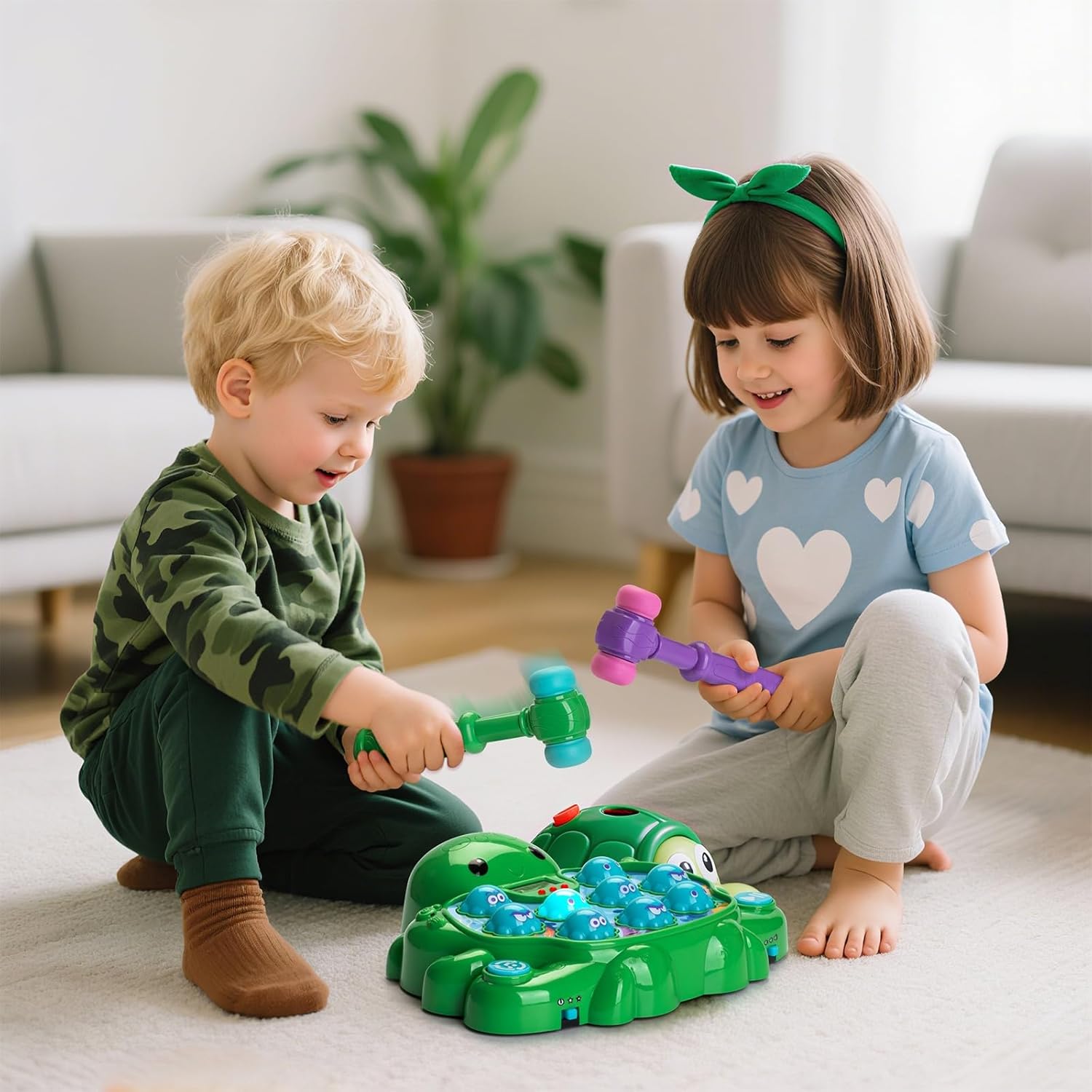 【Engaging & Educational Fun for Ages 2+】Toddlers 2-4 years old and preschoolers delight in this interactive pounding game. Educational mode: 5 hits for 1 point, Super mode: 2 hits for 1 point. Kids boost hand-eye coordination and sharpen focus through active play. Taking turns whacking targets with friends builds essential communication and social skills. It’s the perfect screen-free activity for family game nights—grown-ups easily join in, creating joyful memories with boys and girls.