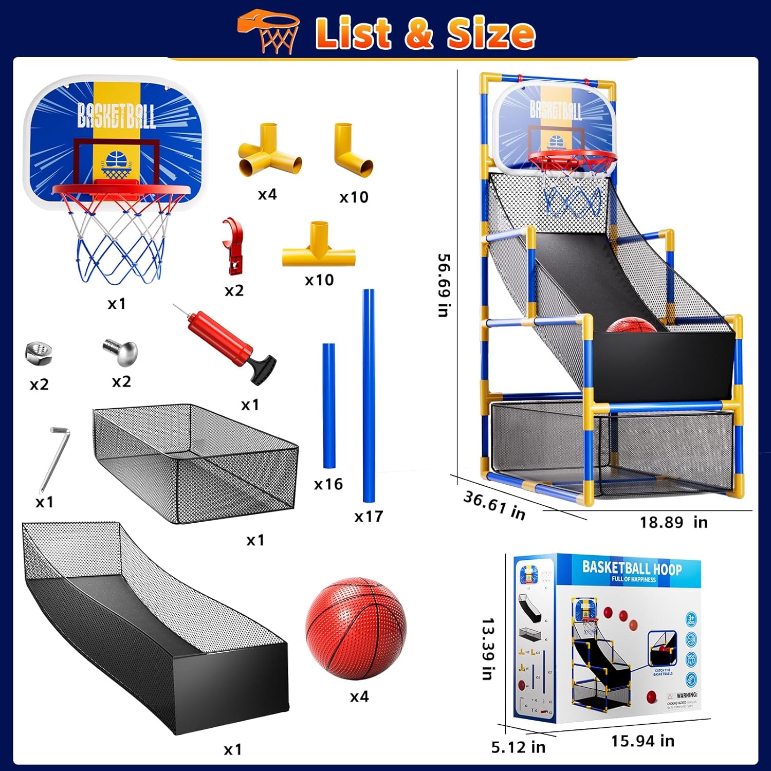 Adjustable Height: Equipped with a basketball hoop, you can set it on different supports at any time, This feature is suitable for children of different ages and heights. This arcade basketball game set is suitable for teaching children the basics of basketball, enhancing their physical fitness, and instilling a love for sports in the early stages. It’s an ideal sports toy for 3 to 12 years old boys.