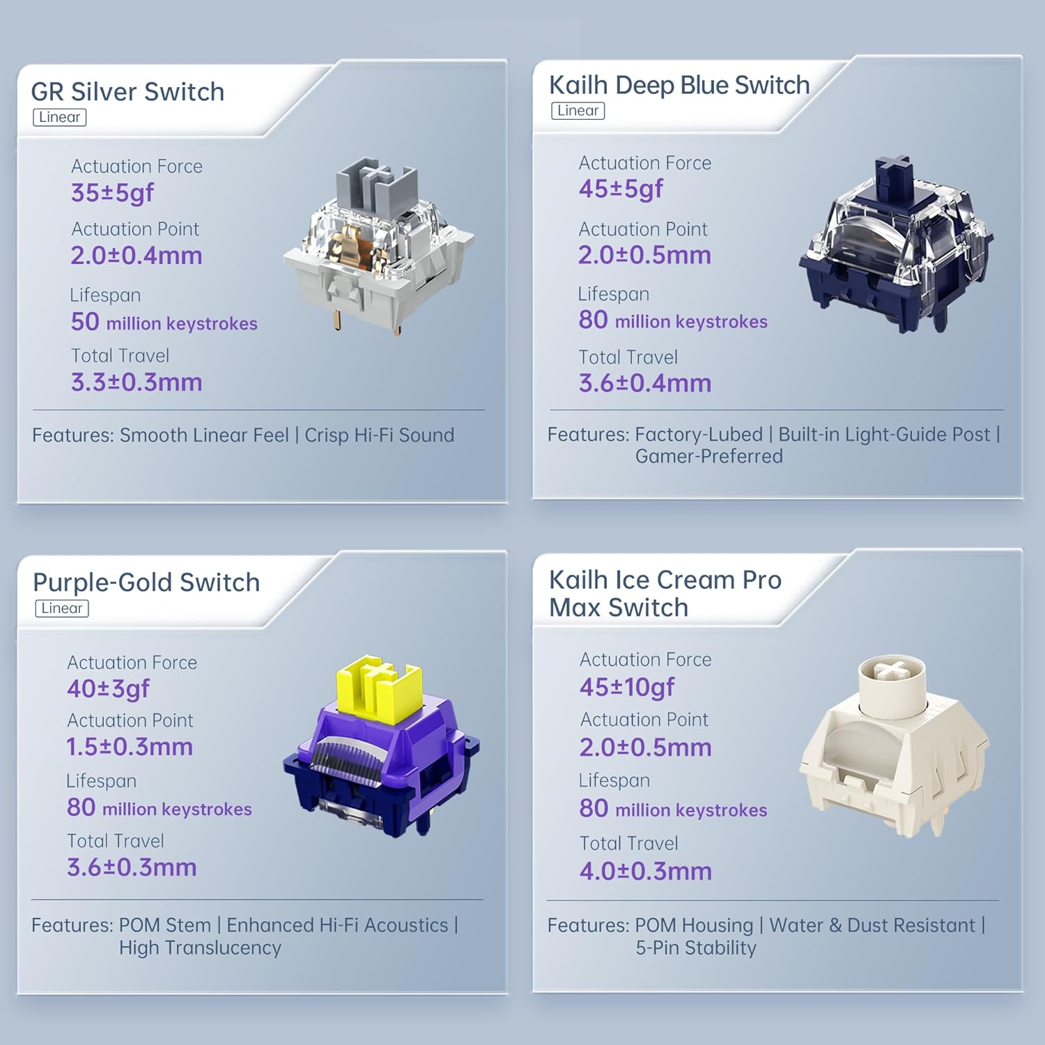 Hot-Swappable and Customizable With hot-swappable functionality and extensive customization options, you can easily replace keycaps and switches to create a personalized keyboard that meets your unique preferences, making your device one of a kind.