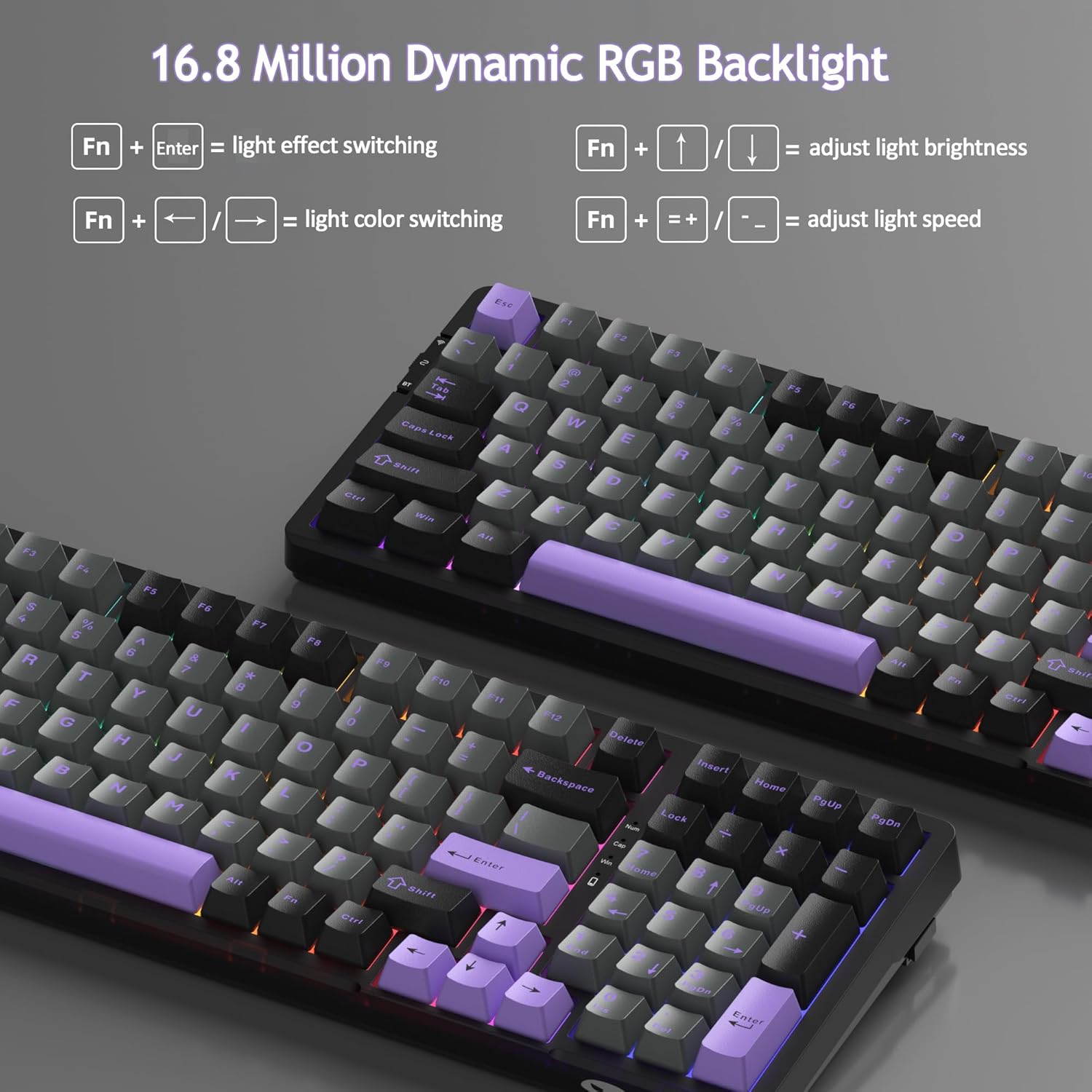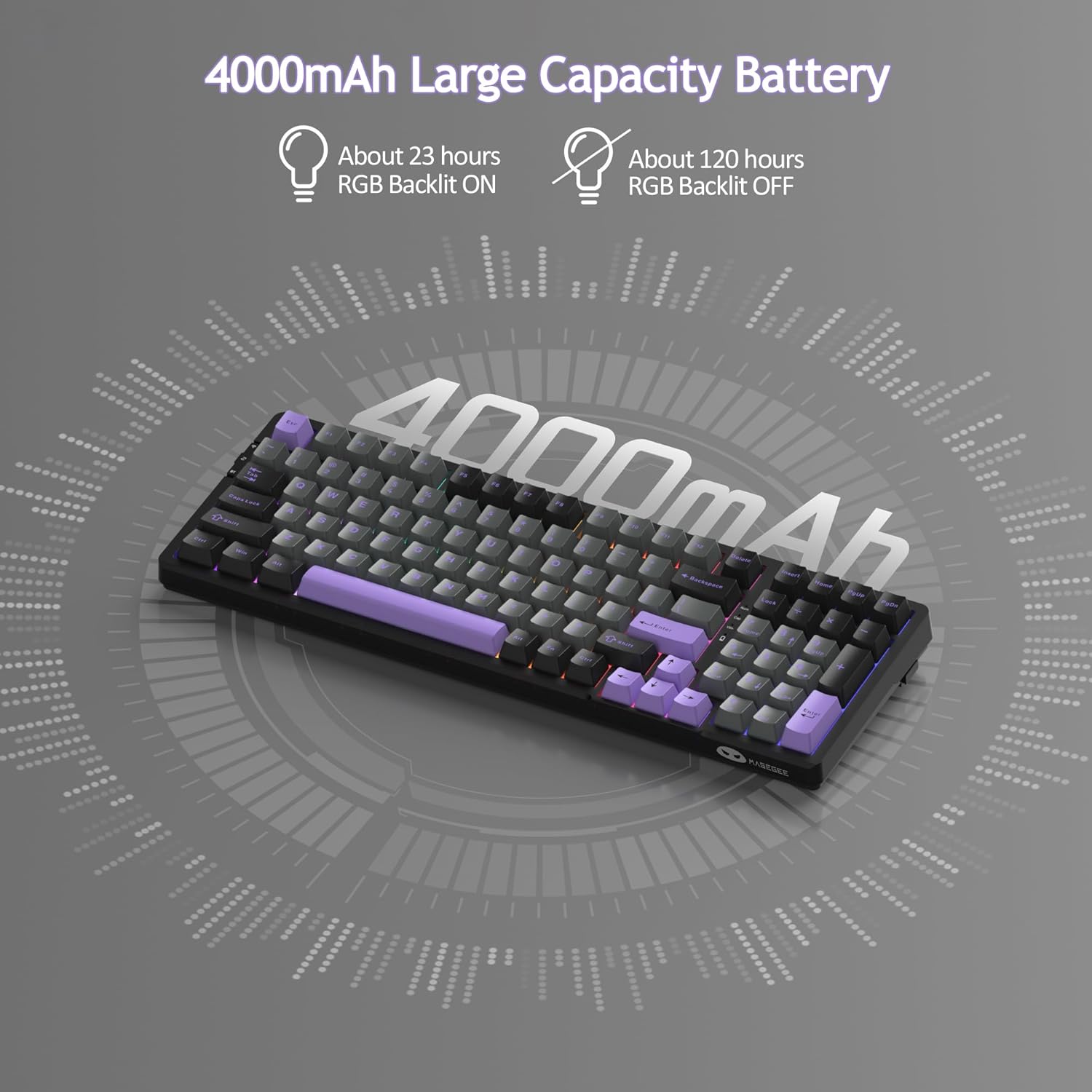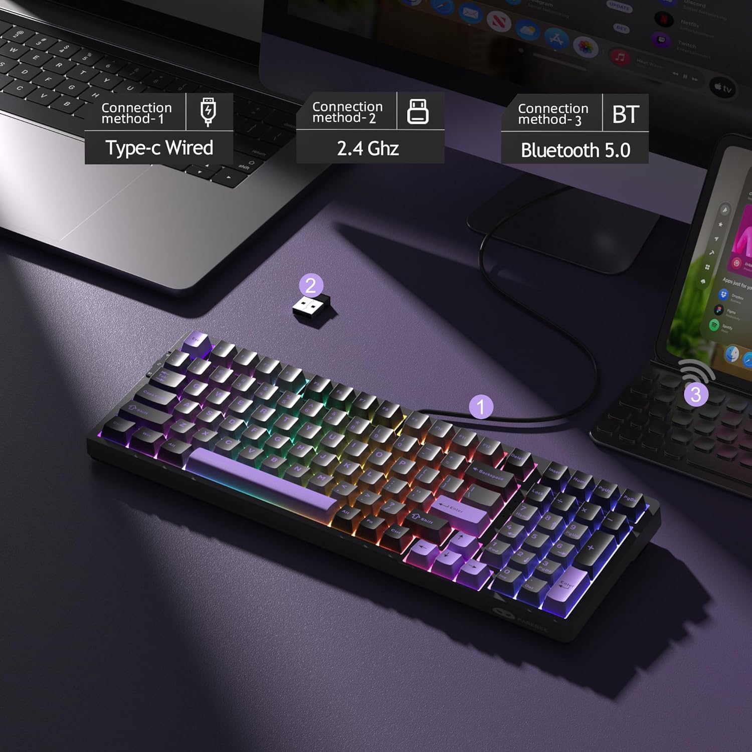 [4000mAh LARGE BATTERY and PBT KEYCAPS]: The 96% layout mechanical keyboard saves more desktop space while retaining function keys and arrow keys for games and work. all 99 keys 100% anti-ghosting, durable PBT keycaps, also equipped with a 4000mAh large-capacity battery, support win/mac dual system.