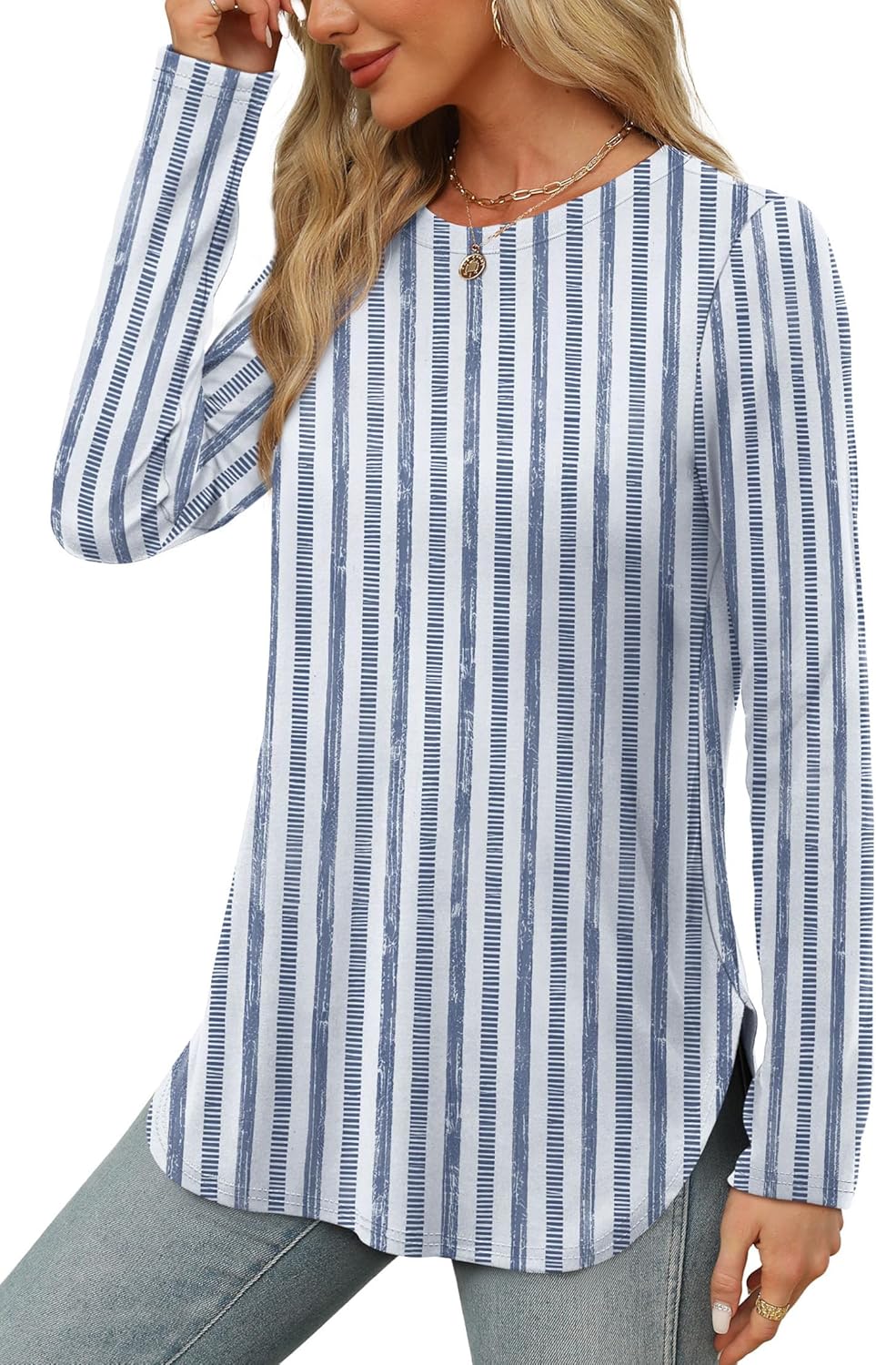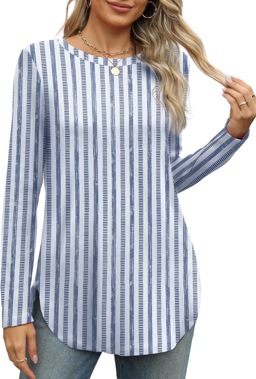 Long Sleeve Tunic Tops for Women Loose Fit Dressy Fall Clothes Round Neck Tops