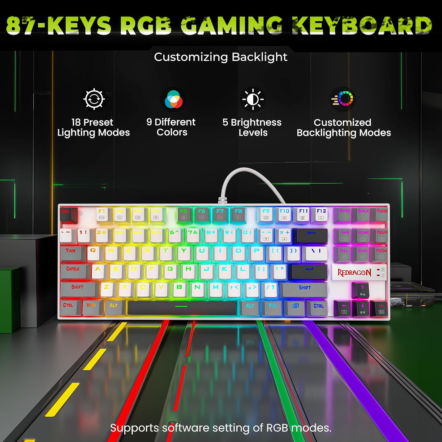 【Space-Saving for Streamlined Gaming & Productivity】Engineered with a TKL (87-key) compact design, this gaming keyboard maximizes desk space for smoother mouse movement and clutter-free setups. Ideal for gamers, creators, and office users seeking a portable, minimalist solution without sacrificing performance.