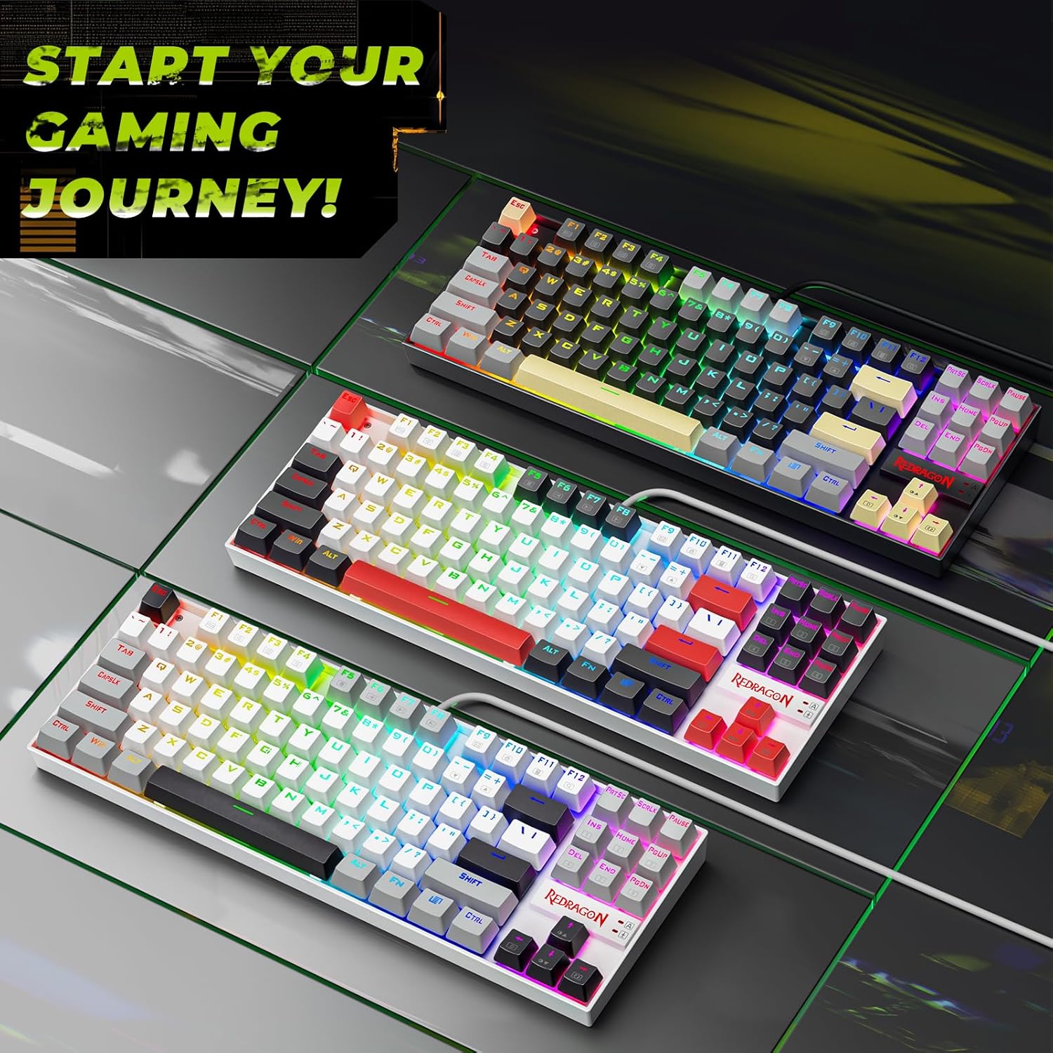 【Pro-Grade Controls & Plug-Play Convenience】Lock Windows keys (FN+WIN), toggle 4-speed polling rates, and access macros via software (redragon.com). N-key rollover, every press registers accurately. Dedicated multimedia keys (FN+F1-F12) handle volume, playback, email, calculator, and more for seamless multitasking.