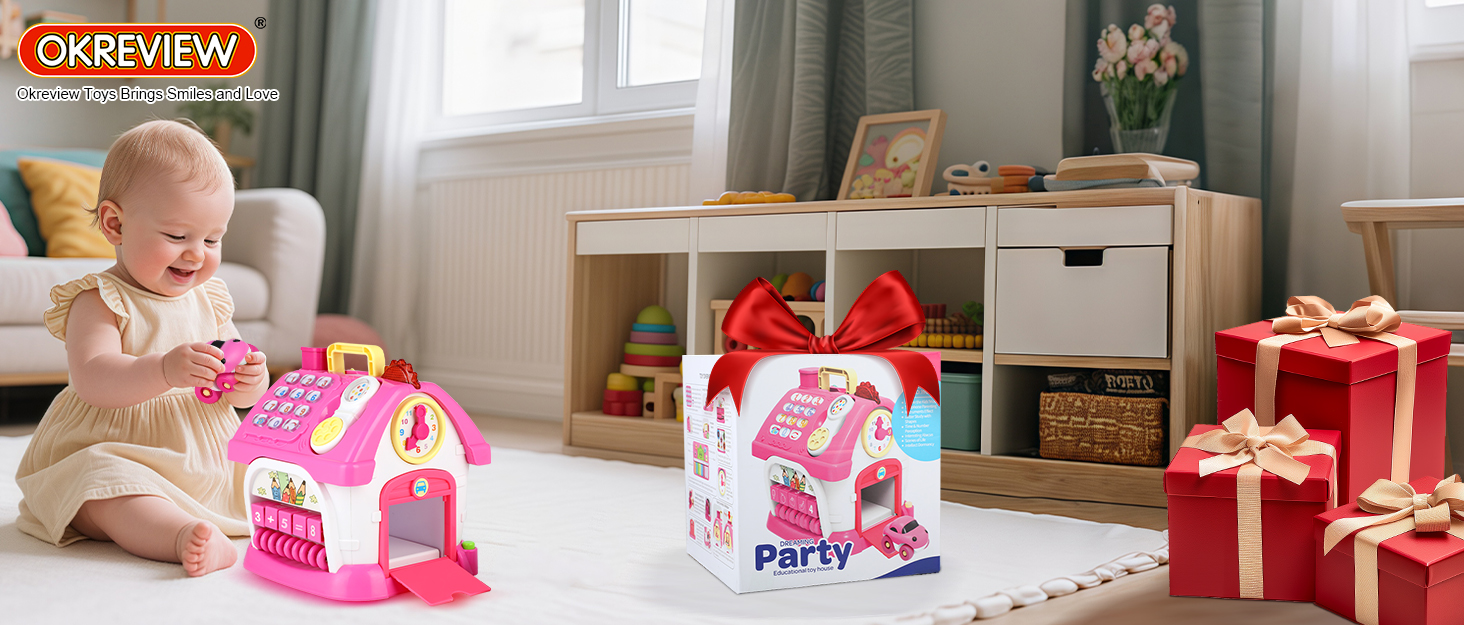 8 IN 1 INTERACTIVE BABY GIRLS TOYS: Okreview upgraded musical activity cube with dual language learning (English & Spanish). Features 8 piano sounds, 18 music effects, bilingual phone keypad, abacus math block, shape & letter sorter, learning clock, key & door, and garage with toy car. This educational toy helps toddlers learn numbers, words, shapes, and music, while improving memory, fine motor skills, and hand-eye coordination. A safe and fun gift for 1+ year old girls and boys for birthdays or holidays.