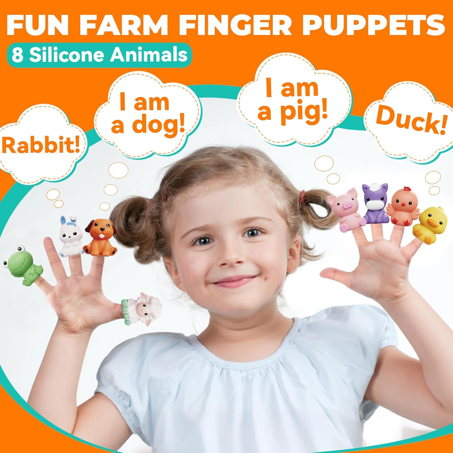 FUN FARM FINGER PUPPETS: Bring farmyard adventures to life with 8 vibrant silicone animal puppets! Each soft, durable puppet features a perfectly sized finger hole for little hands, inspiring hours of creative story play. It’s a great toddler toys 1-2-3. Watch as our toddler girl boy develops animal recognition skills, boosts imagination, and enhances fine motor control – all while creating special bonding moments through interactive play.