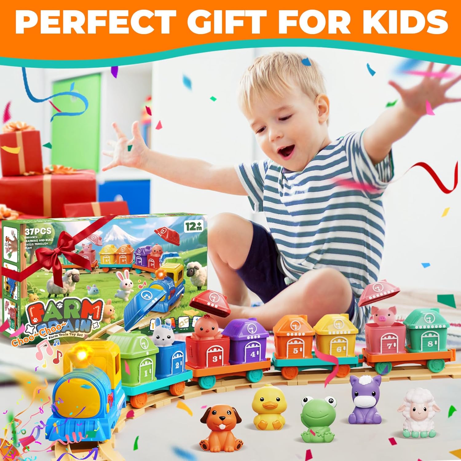 THE PERFECT GIFT FOR TODDLER: Surprise them with our premium train set – safely crafted with durable materials and beautifully packaged for that special “wow!” moment. It’s great 1, 2, 3 year old boys girls gifts. The perfect Christmas birthdays gifts for 1, 2, 3+ year old boys girl, 2 year old girl boy birthday gift