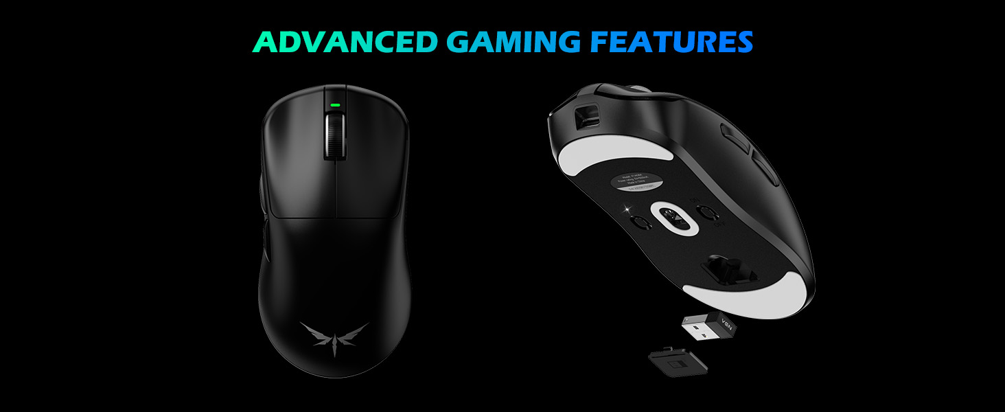 Wireless Lightweight for Winning: Cables truly will affect your detailed battle reaction, this mice with dual-mode connection, 2.4GHz wireless receiver offers you the purest mouse moving experience and hype your KDA rise again. This ultra-lightweight mouse all Only 55g.
