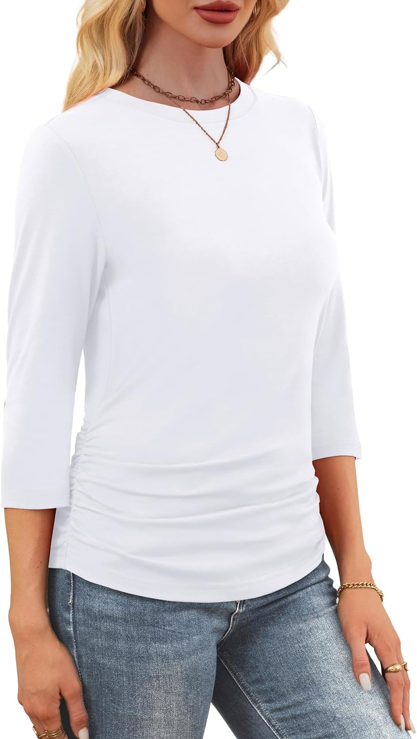 Core product features include:3/4 length sleeve womens tops,crewneck,ruched,solid and floral colors,womens summer tops,summer tops for women,womens tops,tops for women trendy,women’s tops,business casual tops for women,ladies tops and blouses,shirts for women,t shirts for women,long sleeve shirts for women,tshirts shirts for women,womens t shirts,womens shirts,summer shirts for women,tunic tops for women loose fit dressy,women blouses,plus size women blouses,blouses for women dressy casual,womens blouses,vacation outfits for women,business casual outfits for women,travel outfits for women,beach vacation clothes for women,womens fall fashion,fall outfits for women,fall tops for women,fall clothes for women