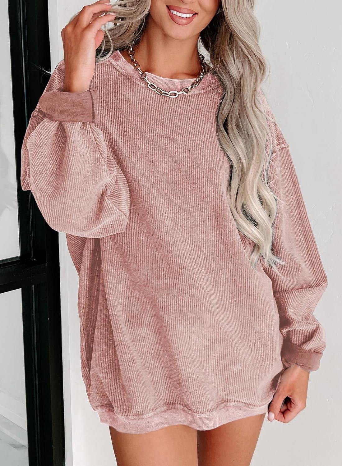 Fall Fashion Women’s Comfy Lightweight Corduroy Casual Sweatshirt Oversized
