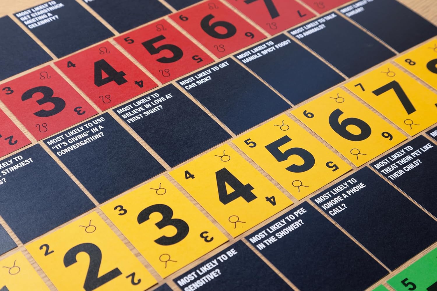 Test how well you know your friends and family (and yourself) — without saying a word! Rank yourself within the group as to how you are “most likely to” react in different scenarios. Score a point for the group when you rank yourself uniquely; lose a point when you don’t.