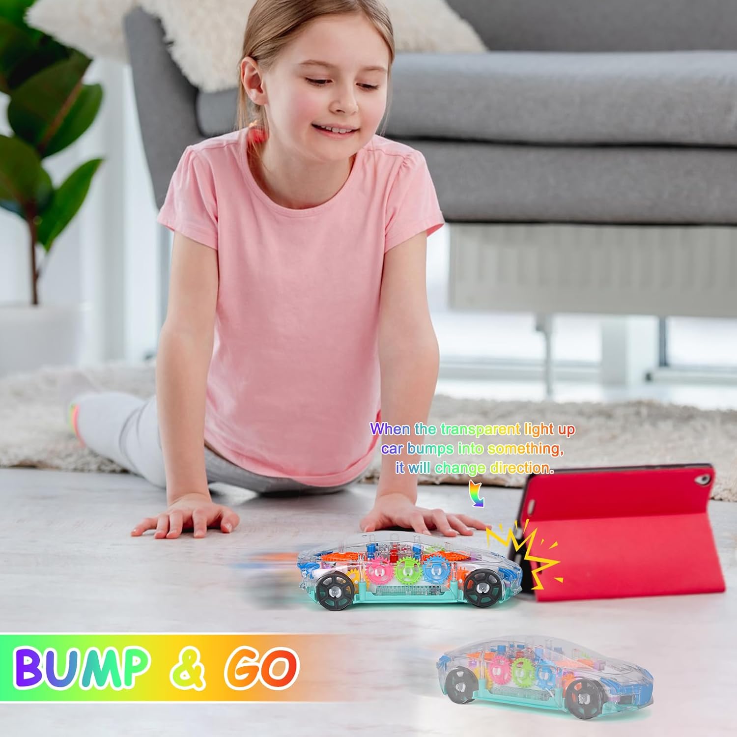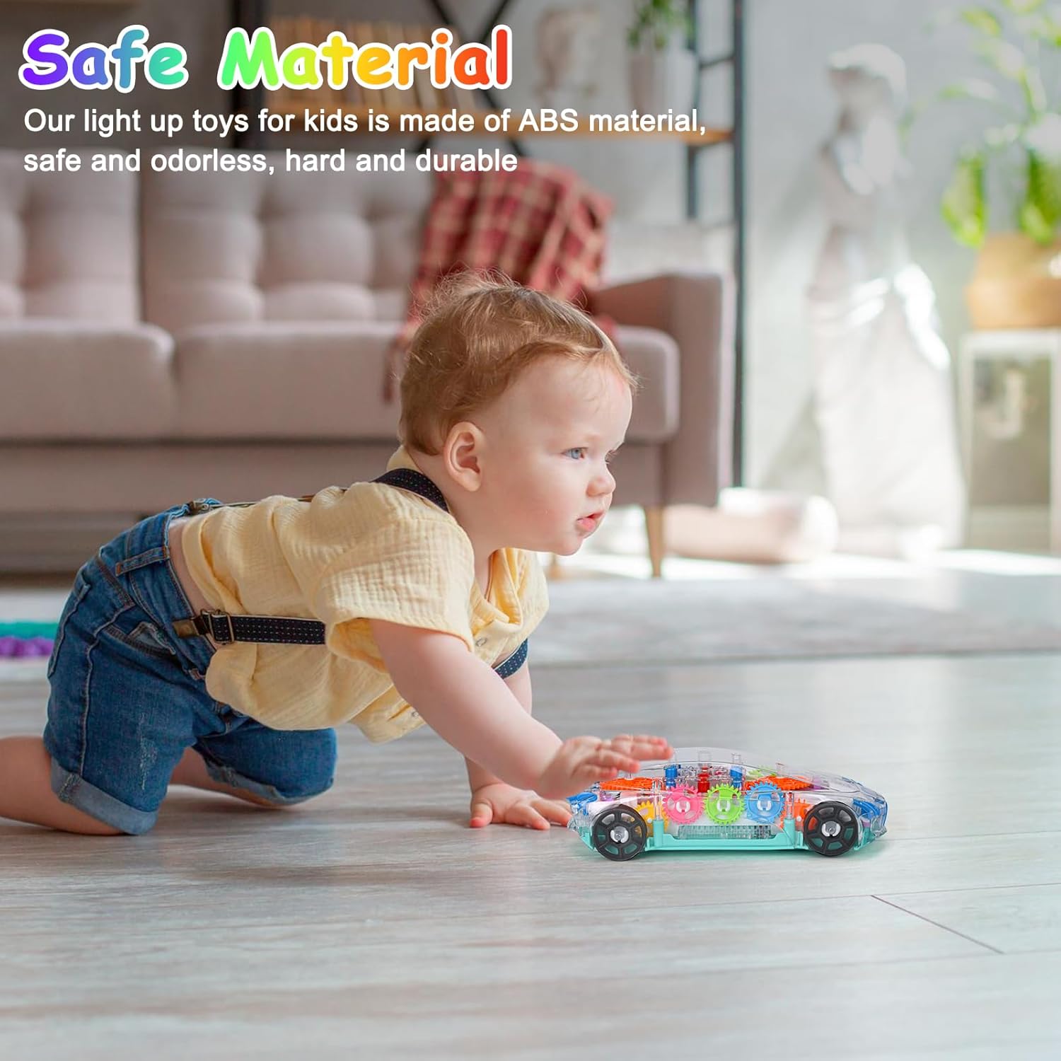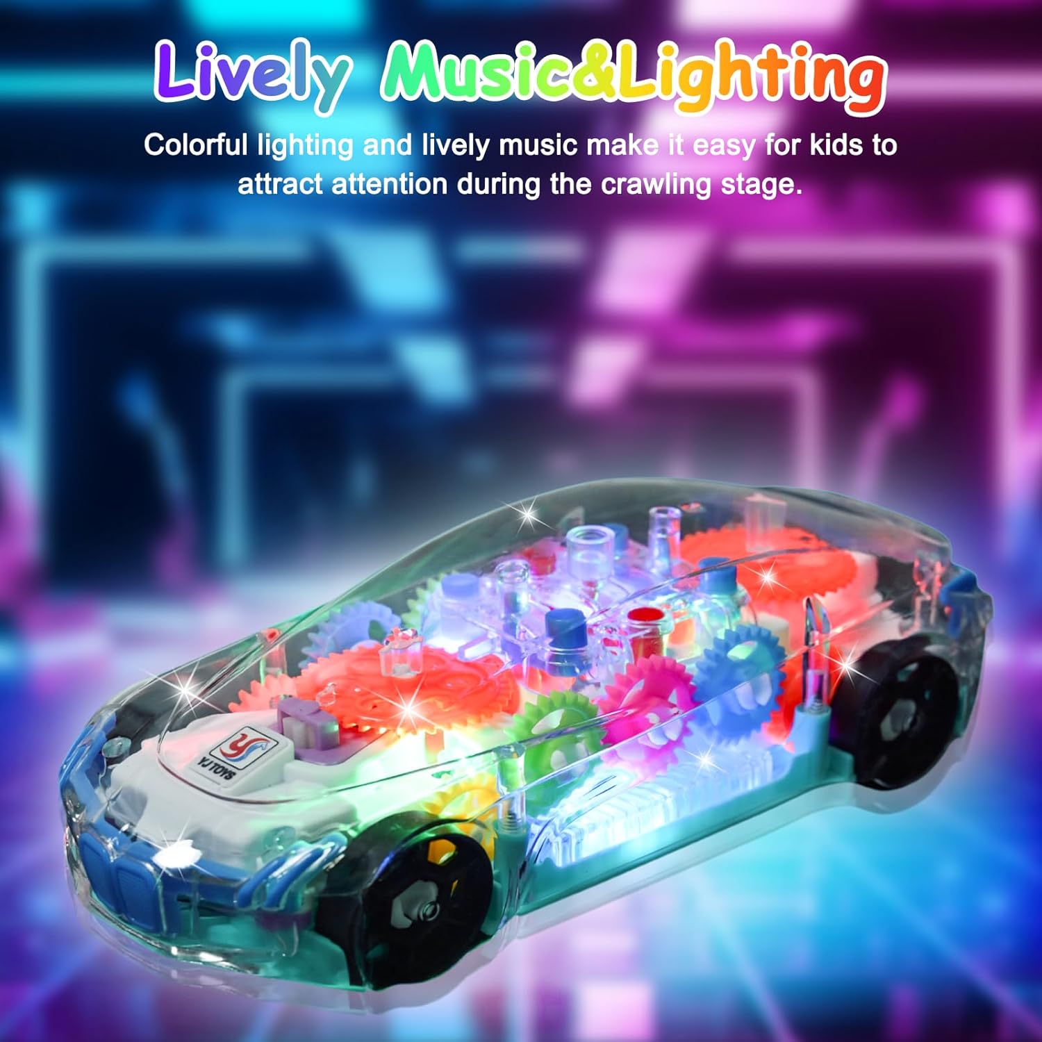 Ignite Passion and Curiosity: This toy car can ignite children’s passion and arouse their curiosity, taking fun to the extreme, thus creating unique and everlasting memories for kids. Not only does this transparent sensory toy car play music, light up, and move on its own, but it also has colorful gears that spin in a cool way that captures your child’s attention for hours of fun.